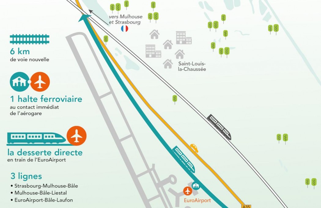 La Nouvelle liaison ferroviaire de l’EuroAirport est un maillon essentiel pour le développement de l’offre transfrontalière du RER trinational de Bâle entre Mulhouse, Bâle et la Suisse du nord-ouest.